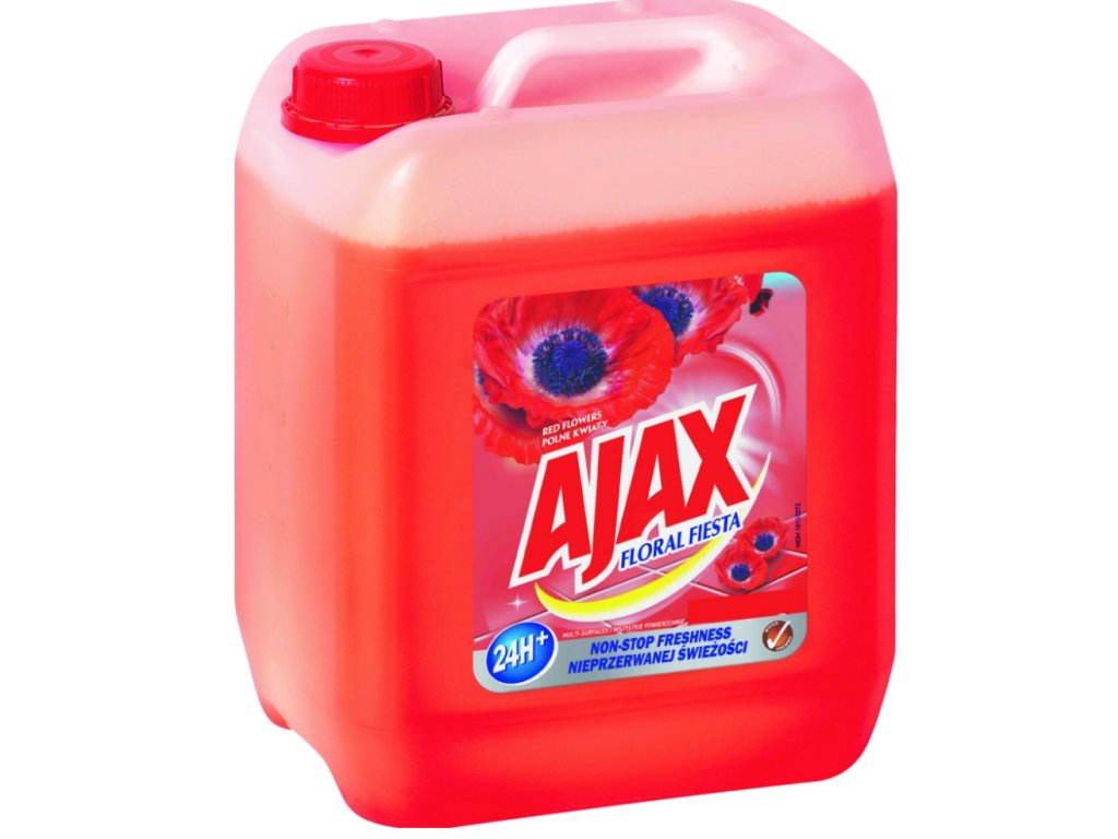Ajax na podlahy a povrchy Floral Fiesta Red Flowers (vlčí mák), 5 l je univerzální čisticí prostředek určený pro důkladný a zároveň šetrný úklid domácností i profesionálních prostor. Spolehlivě odstraňuje běžné nečistoty, mastnotu a prach z různých omyvatelných povrchů a zanechává je dokonale čisté a provoněné květinovou vůní vlčího máku.
