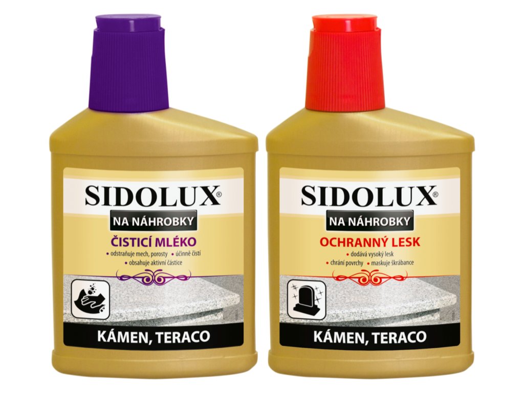 SIDOLUX duopack na ošetření náhrobních kamenů (čistič+ochranný lesk), 330ml+250ml,
