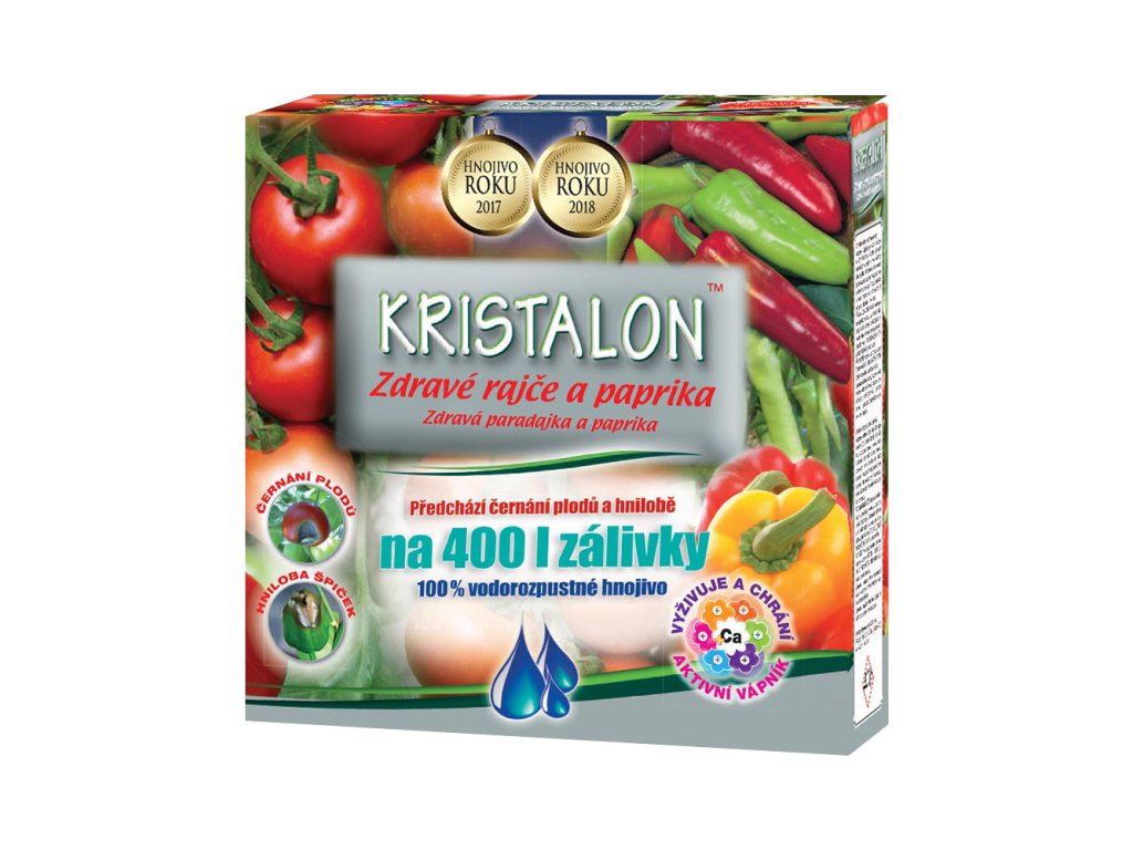 - Speciální KRISTALON s obsahem 2 složek – hnojivo 300 g (dusík, fosfor, draslík) + vápník 200 g.