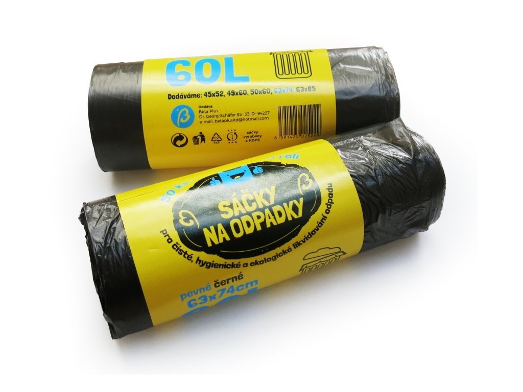Obreta sáčky na odpad 60 l, černé, HDPE jsou spolehlivým řešením pro každodenní likvidaci odpadu v domácnostech, kancelářích i provozech. Díky objemu 60 litrů a rozměru 63×74 cm se hodí pro střední a větší odpadkové koše.