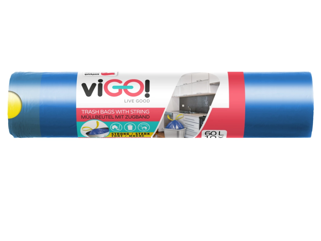 viGO pytle na odpad, zatahovací, 13 µ, 60 × 70 cm, 60 l, 10 ks