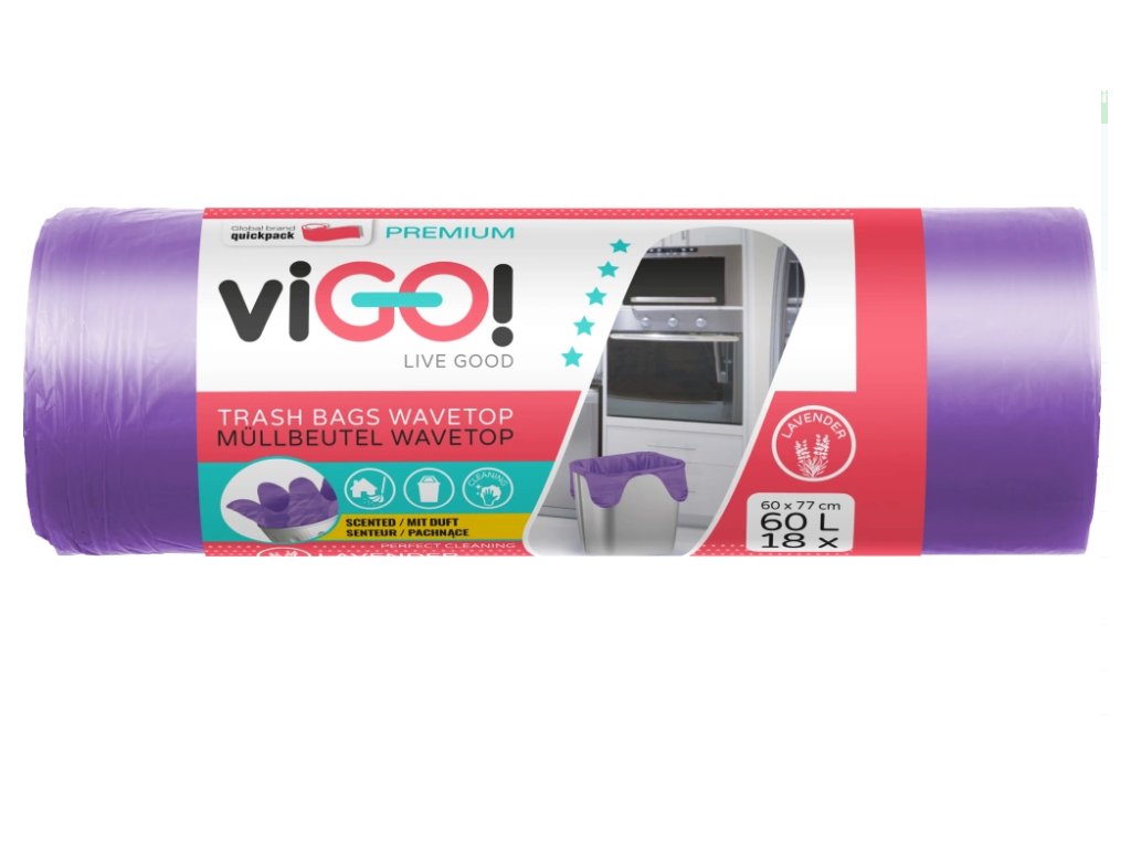 viGO voňavé pytle na odpad s uchy, levandule, 18 ks, 10 µ, 60 × 72 cm, 60 l