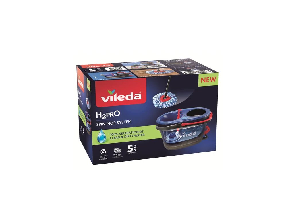 Vileda H2PrO třásňový rotační mop je moderní úklidový systém navržený pro maximálně hygienické a efektivní mytí podlah. Díky inovativní technologii H2PrO dochází k oddělení čisté a špinavé vody, což zajišťuje lepší výsledky úklidu a omezuje opětovné roznášení nečistot po podlaze.