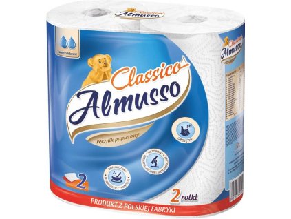 Almusso Classico 2vrstvý kuchyňské utěrky – měkký, savý a odolný papír z kvalitní celulózy. Balení obsahuje 2 role o délce 9,5 m každá, ideální pro každodenní použití v domácnostech i menších provozech.